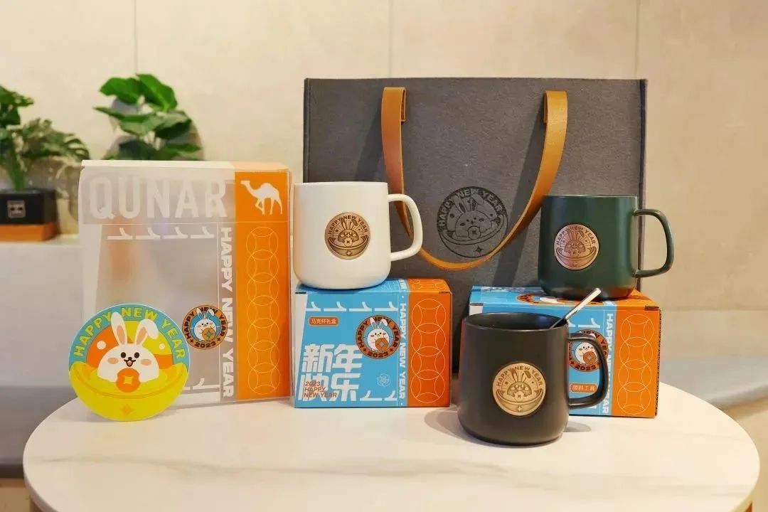 去哪儿旅行的主题是「Glad 兔 meet you」,礼盒外包装为实用环保的毛毡包,礼包内配备了可爱的流体驼和流体兔钥匙链,象征着与驼厂一辈子的加薪水杯。