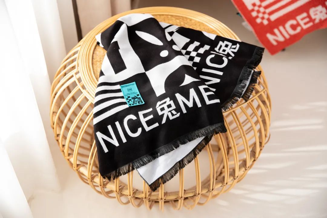 得物的春节礼盒主题是“NICE 兔 MEET YOU”,分了几个组合:新年温暖系列(毛毯+帽子+围巾),新年氛围组(灯笼+红包+春联),新年防护必备(口罩)。