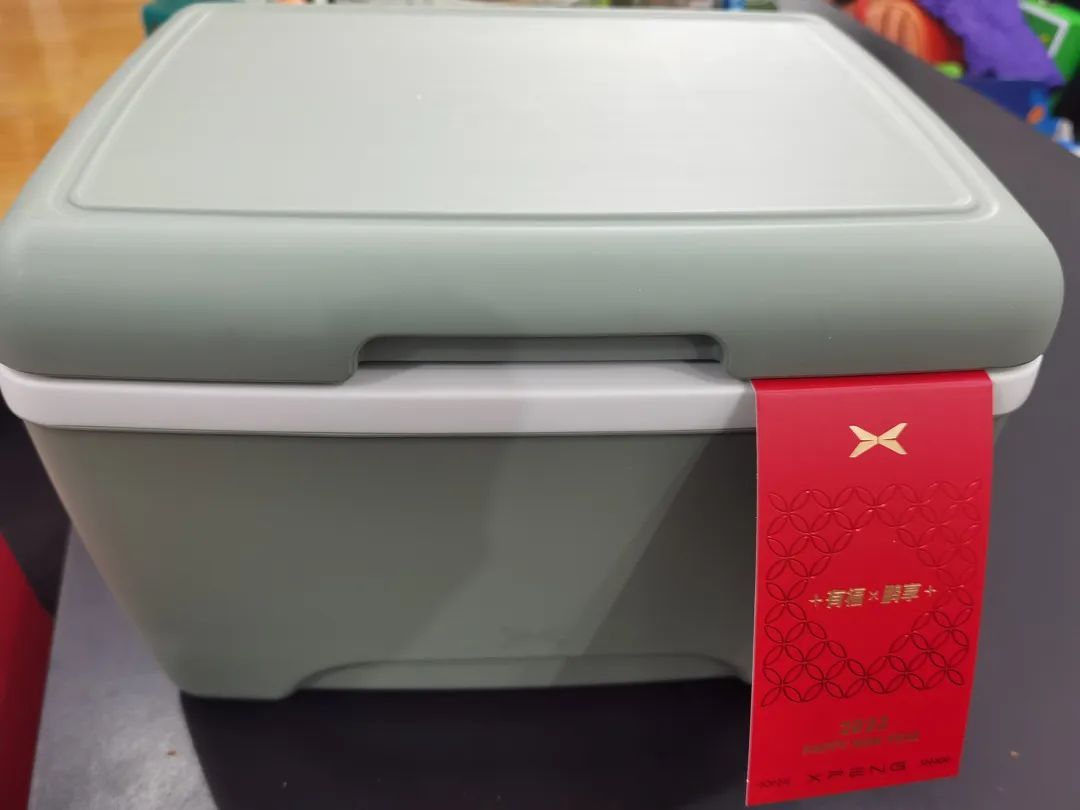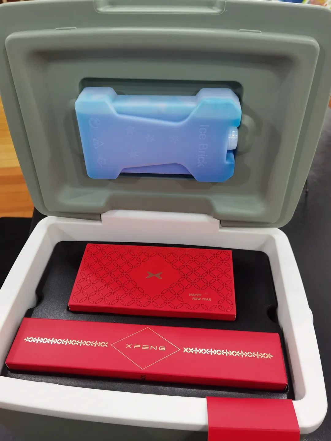 小鹏的新春礼盒竟然是一个冷藏盒,可以里面塞满可乐雪碧,并放在车里,随时享用冰爽时刻的那种。果然很对鹏友的口味。