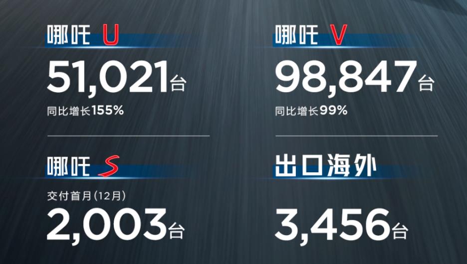 具体到车型上,售价在10万元左右的低价小车哪吒V系列是支撑其销量增长的主力,在去年累计卖出98847辆;哪吒U则卖出51021辆;在12月份开启交付的新车哪吒S则交出了2003辆的成绩单。