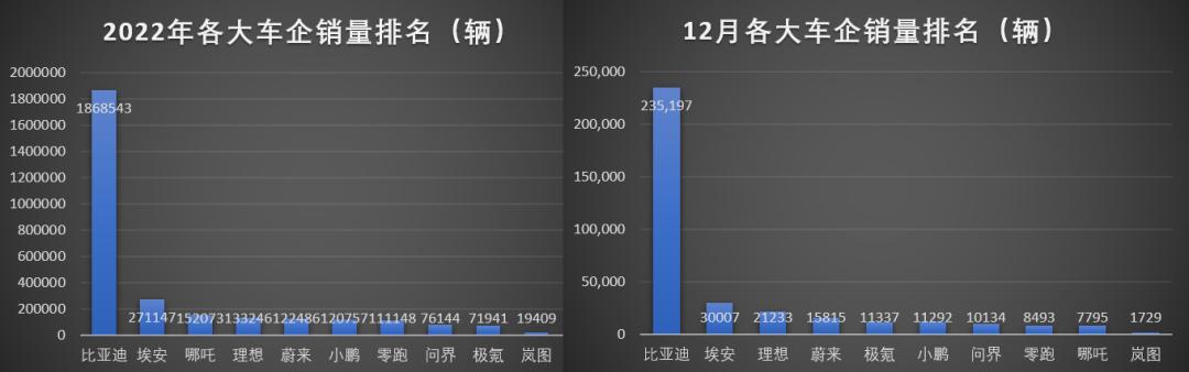 新能源车2022全年销量解读:比亚迪市占率近3成,蔚小理重回第一线