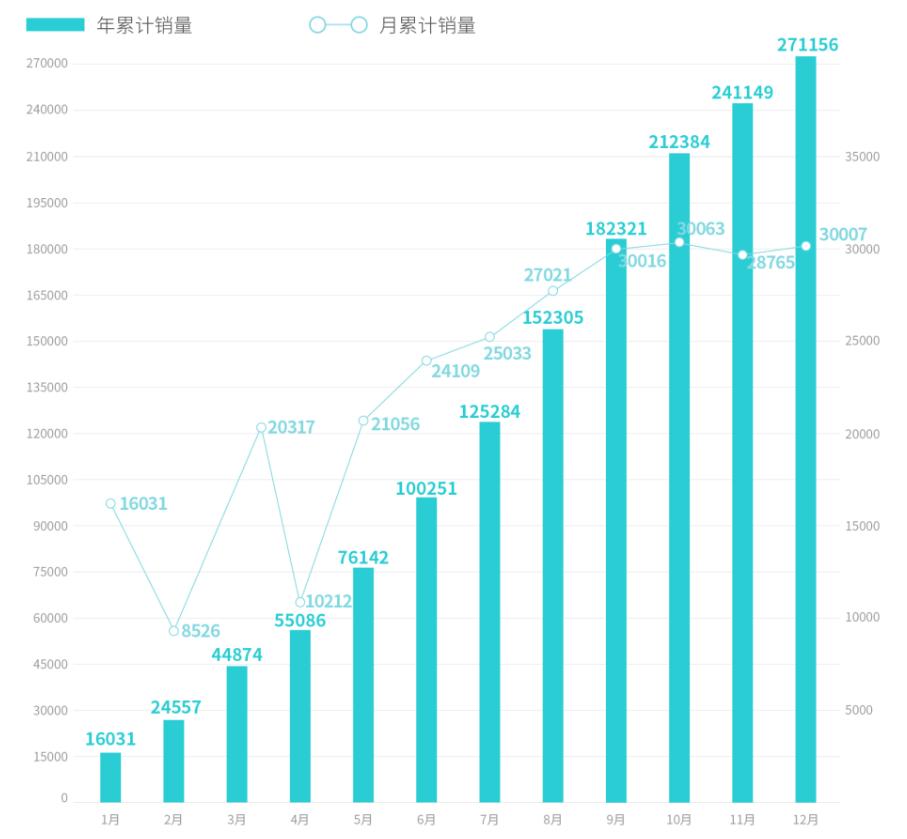 比亚迪仍然以12月23.5万辆,全年186.85万辆的销量数据稳稳占据国内新能源汽车市场的龙头地位。