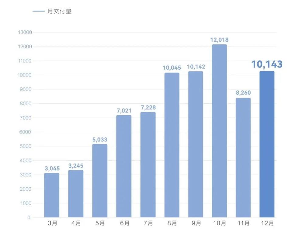 2022年,问界品牌累计交付7.5万辆。12月份交付10134辆,环比增加23%。