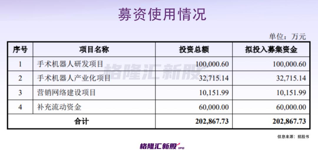 根据招股书,公司符合并适用《上海证券交易所科创板股票发行上市审核规则》第二十二条第二款第(五)项规定的上市标准。本次IPO拟募资20.29亿元,主要用于手术机器人研发项目、手术机器人产业化项目、营销网络建设项目、补充流动资金。