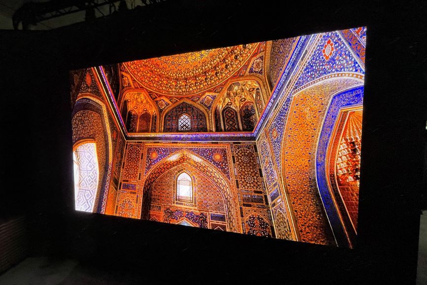 安装在墙上的三星8K电视。三星的 8K NEO QLED 采用了 Micro-LED 技术。图片来源:马修·史密斯(MATTHEW S. SMITH)