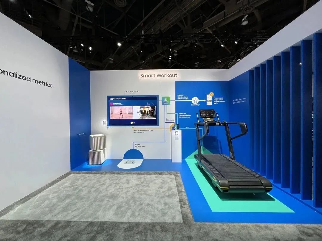 今年三星的展馆是家居类唯一一个全场馆需要排队进入的展台。整个展区的设置类似宜家,观众一路会走过十几个不同场景的智能生活单元,包括智能健身、智能养老等等。