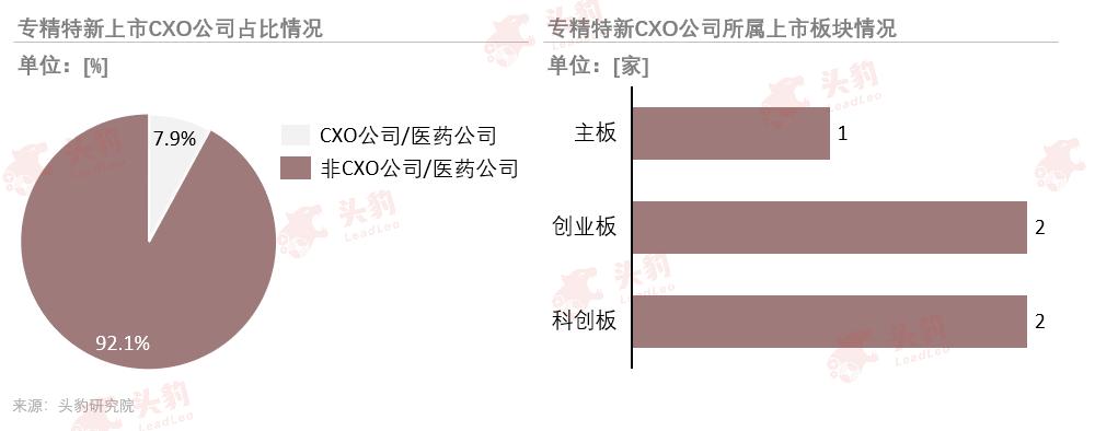 专精特新上市的CXO公司占医药公司比重为7.9%,主要分布在创业板和科创板