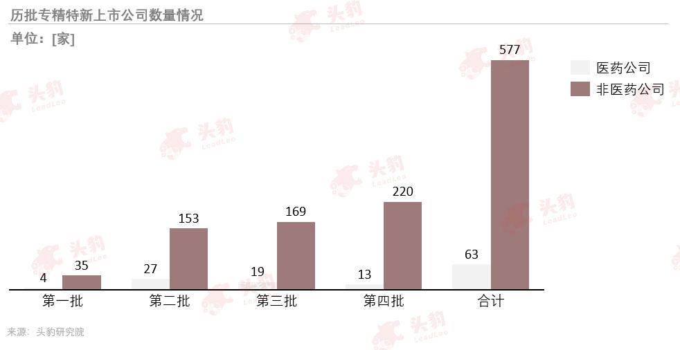 专精特新上市医药公司63家,占专精特新全部上市公司比重为9.8%