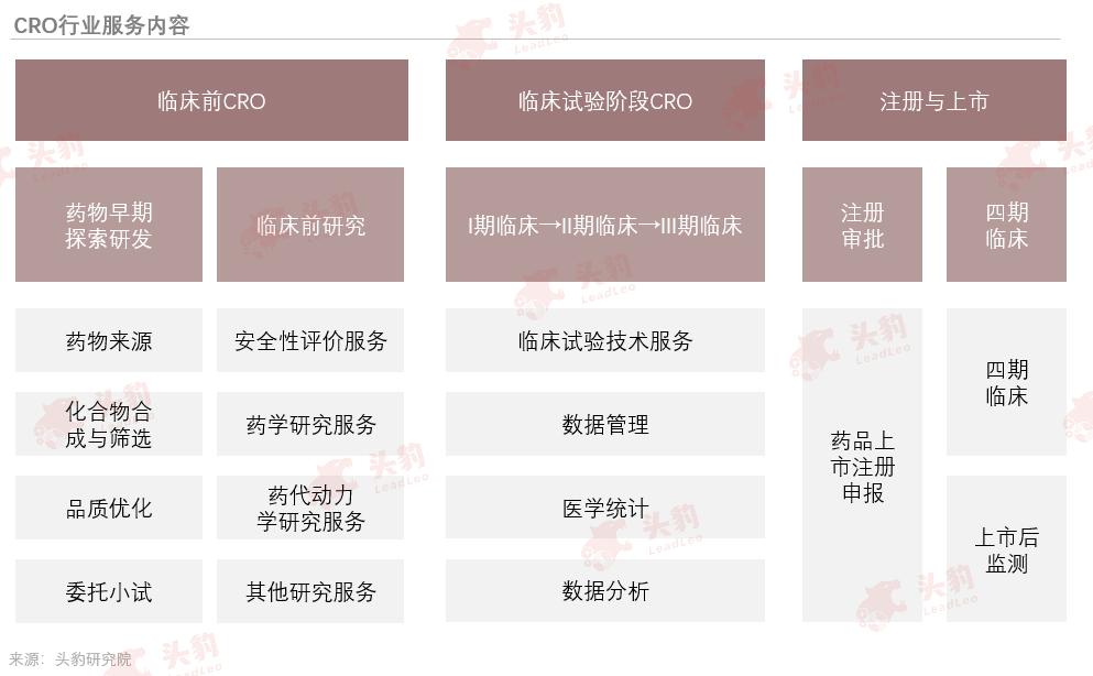 CRO(合同研究组织,Contract Research Organization)通过为制药企业提供贯穿药品临床前、临床试验阶段以及上市审批等环节的药品研发外包服务而创造利润