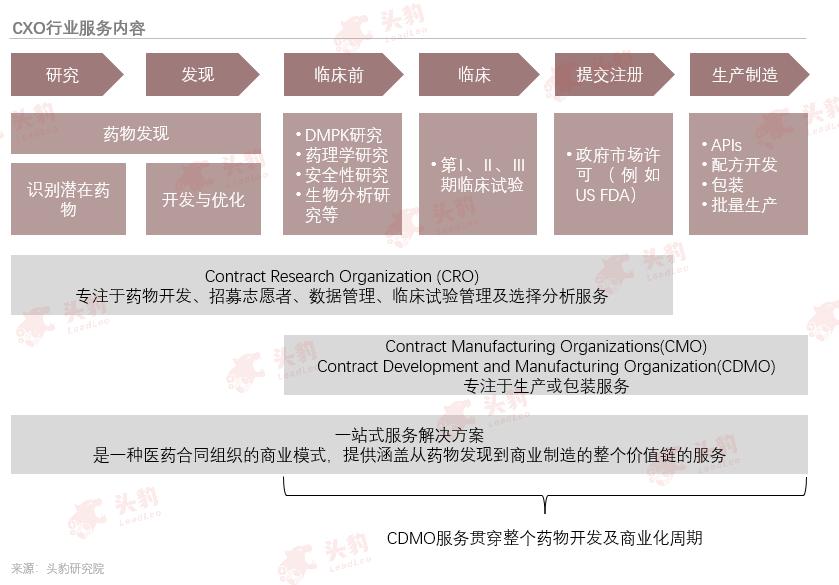 整体而言,CXO行业的服务覆盖了从药物发现到临床试验到最终上市后的商业化生产。