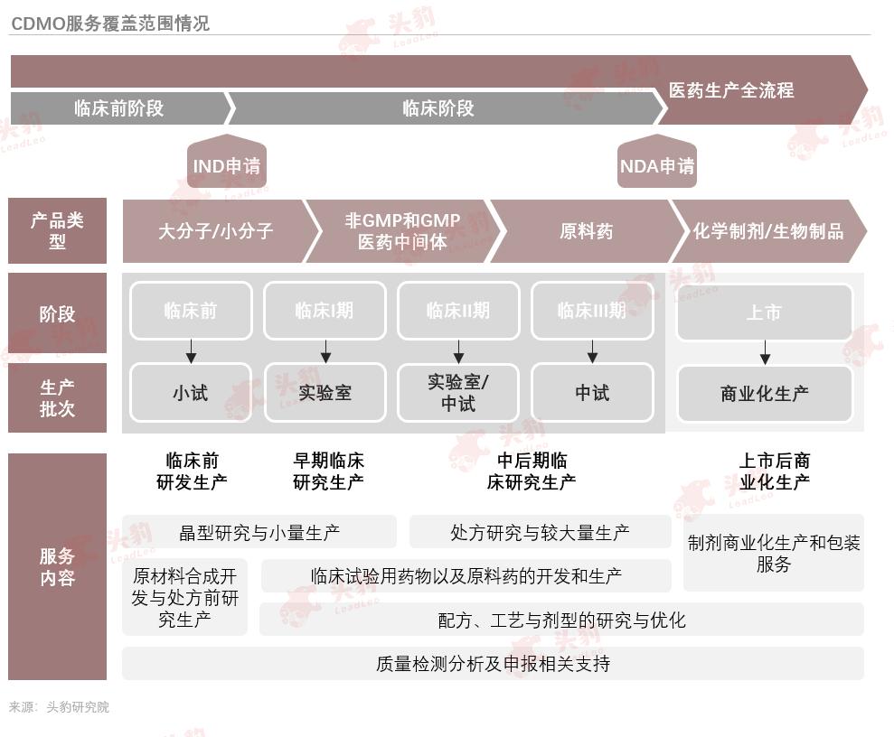 CDMO服务范围几乎贯穿医药研发生产全流程