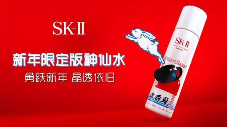 2022年底,国际高端护肤品牌SK-II 联合大白兔,以“勇跃新年,晶透依旧”为主题,推出跨界新品——SK-II 新年限定版神仙水。高端护肤品和国民奶糖的跨界合作很快吸引了不少关注,不少网友用“SK兔”命名这一新组合。