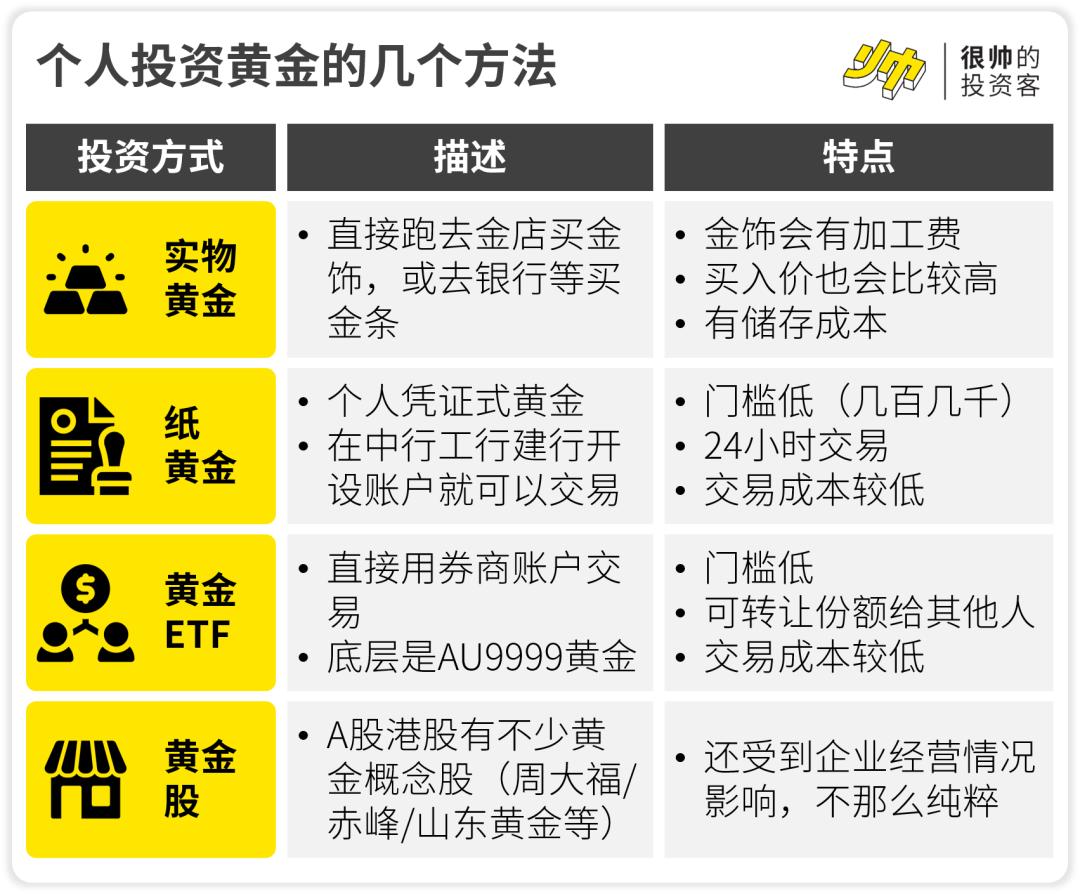 最后当然得顺带介绍个人投资黄金的几个方法——