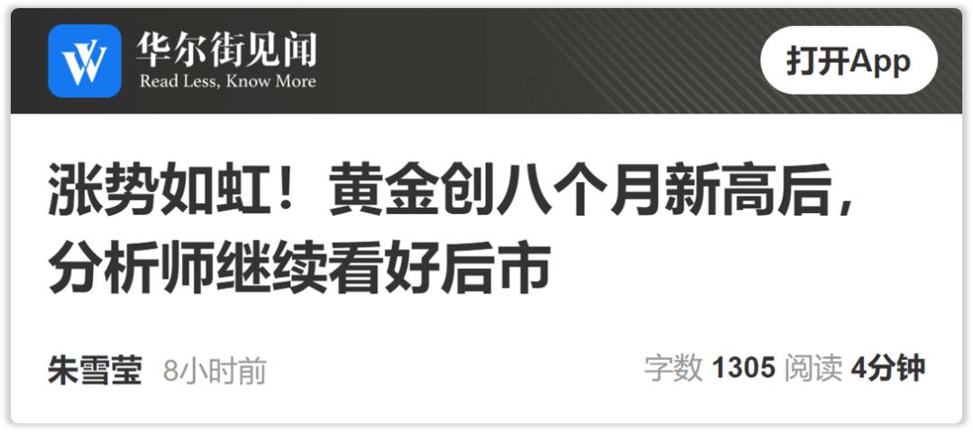 《涨势如虹!黄金创八个月新高后,分析师继续看好后市》