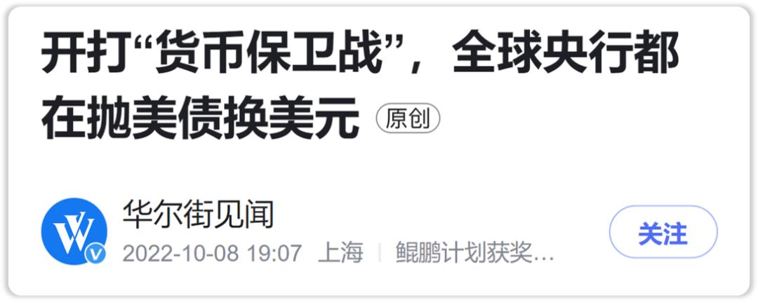 《开打“货币保卫战”,全球央行都在抛美债换美元》