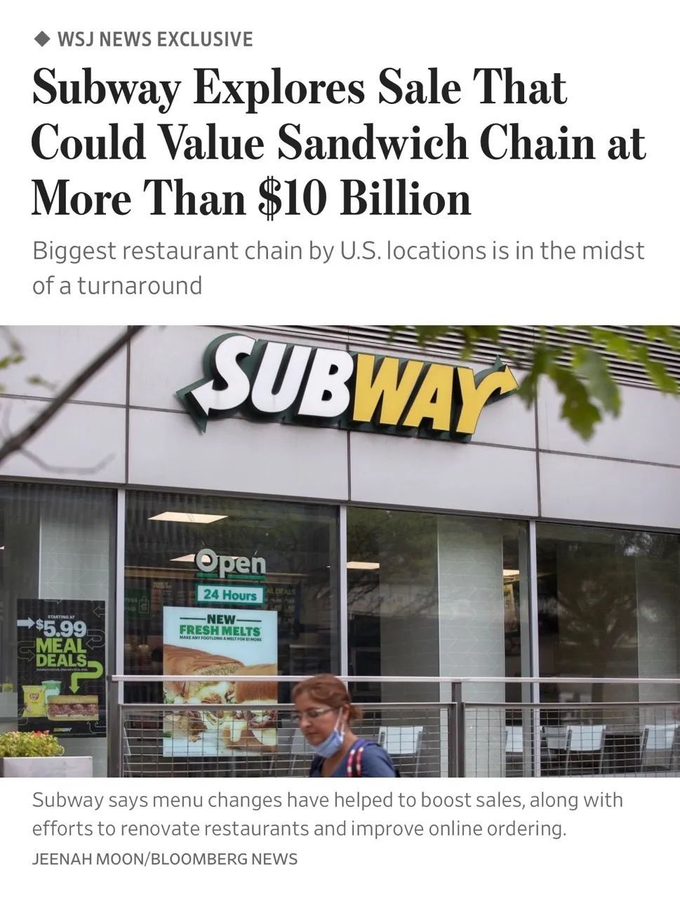 在全球拥有数万家门店的三明治连锁赛百味(Subway),突然传来考虑“卖身”的消息。