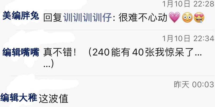 找她陪拍的人很多,上周四(1月5日)预定的我最终被排到这周二(1月10日)。不过这段时间,我们的聊天小窗倒也没一直冷着,她留了“作业”,希望我能把喜欢风格的照片发给她。