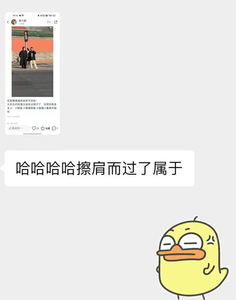 “白天我们和杨迪擦肩而过了!”
