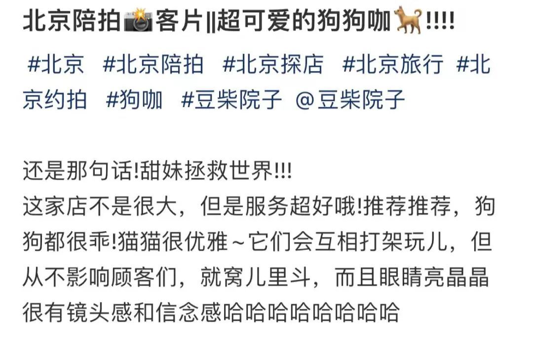 然而很快我就开始佩服“妹妹”对于拍摄路线计划的先见之明。在寸土寸金的鼓楼,那家名为“小院”的狗咖比我想的要狭窄好几倍,单从第一印象来说,景别单调无法容人在里面拍一个下午。不过狗咖的服务弥补了面积,发现我们对拍照的热情后,工作人员一直在高频参与。