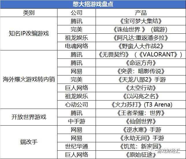 二 “憋大招”公司盘点:腾讯网易、完美、巨人、中手游均上榜