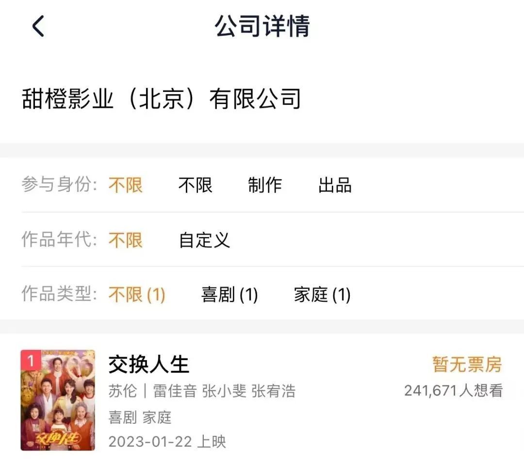 甜橙影业出品情况 图片来源:灯塔截图