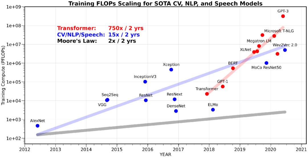 想要搞定这些「庞然大物」的训练,就至少需要投入超过1000PetaFlop/s-day(PD)的计算资源。