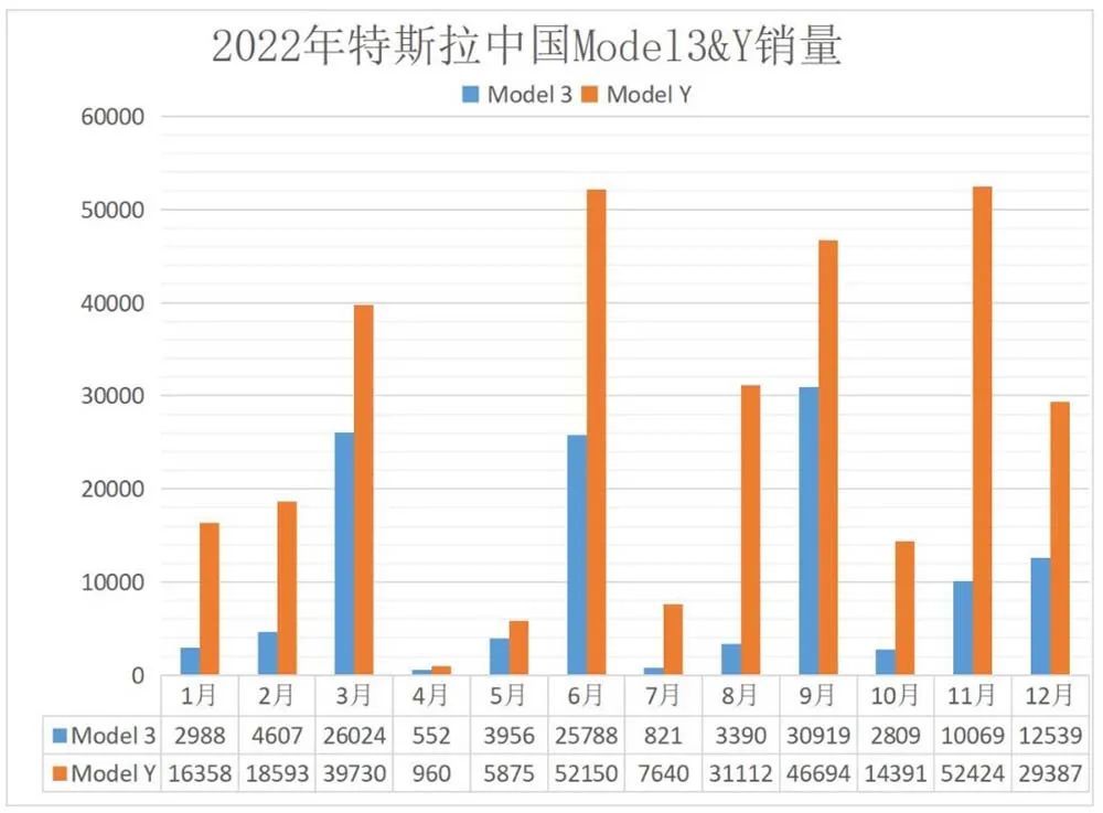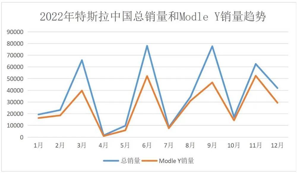 ▲2022年特斯拉中国总销量和Model Y销量变化曲线