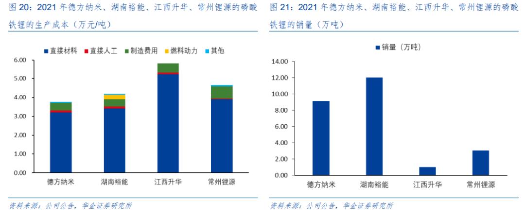 根据更早先的一份研报中对成本的估算,德方纳米产品的单吨成本比同行少大约2万元左右,这其中主要分为3个部分:工艺优势导致的:能耗、磷源、锂源、铁源的不同,这些共同塑造了德方纳米的成本优势。