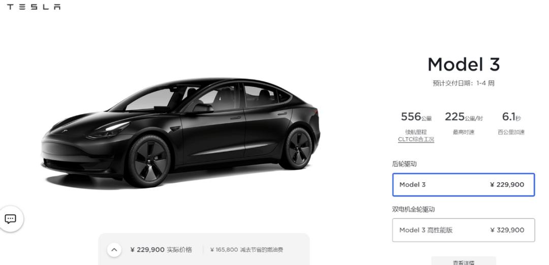 其中Model 3起售价从265,900元降至229,900元(合33,427美元),Model Y起售价为259,900元,创下历史最低价格,交付时间仅为1至4周。