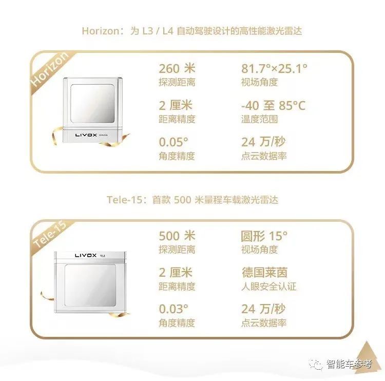 2020年年初的CES展上,大疆览沃发布了Horizion和Tele-15两款激光雷达: