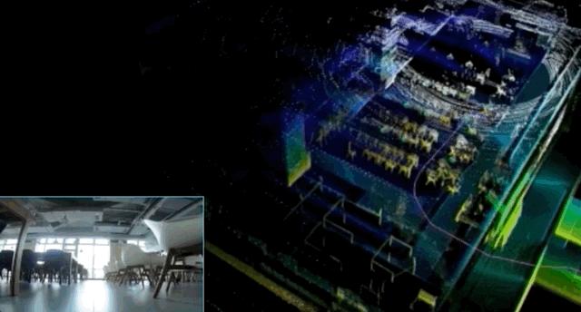 例如使用Mid-360的机器人穿梭经过餐厅: