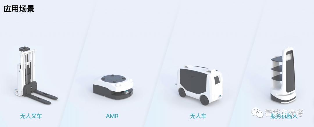 可搭载在无人叉车、AMR(自主移动机器人)、无人物流配送车、服务机器人上。