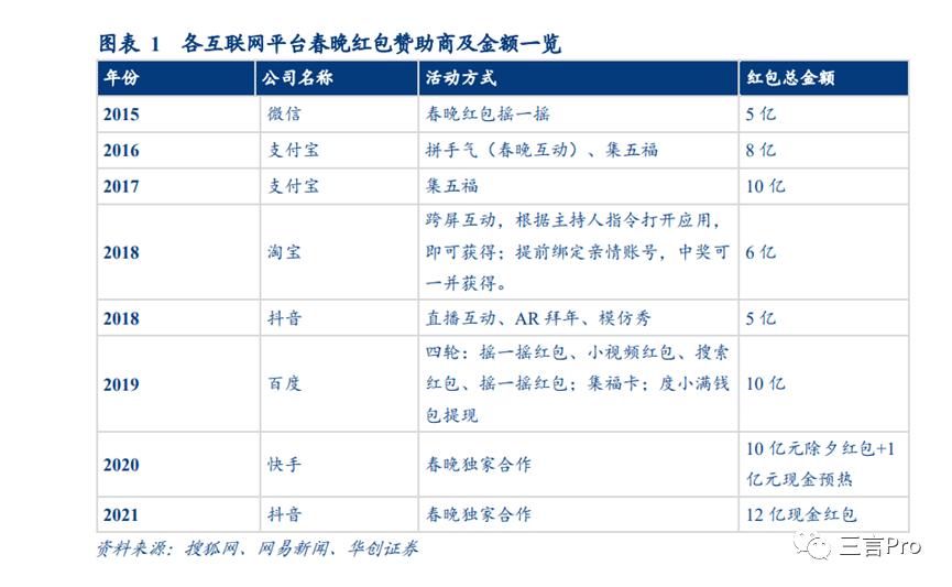 2015年微信发了5亿红包,阿里3年春晚发了近20亿红包,之后的每家互联网企业的红包规模都不低于5亿。