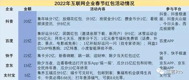 有报道指出,2021年不完全统计各企业的春节红包总计高达122亿元。但在2022年,有所降低,大约在80亿元。
