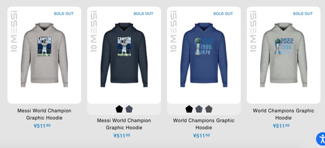 MGO Global顺势在Messi Store推出世界冠军(World Champion)系列产品,其中,梅西扶耳庆祝名场面等单品全部售罄。