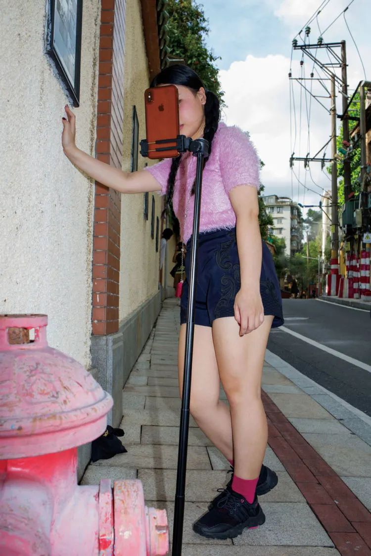 2022年8月5日,广州。在东山口自拍的年轻人。(图/ 阿灿)