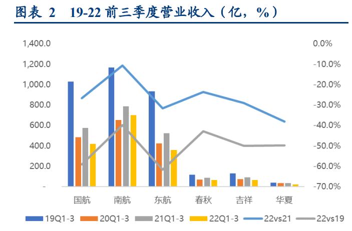 国内主要航司近年来前三季度营业收入,图源:华创证券
