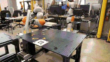 两台机器人使用感知、力控制和多机器人规划,来组装一件简单的家具 | 来源:Intrinsic 官网
