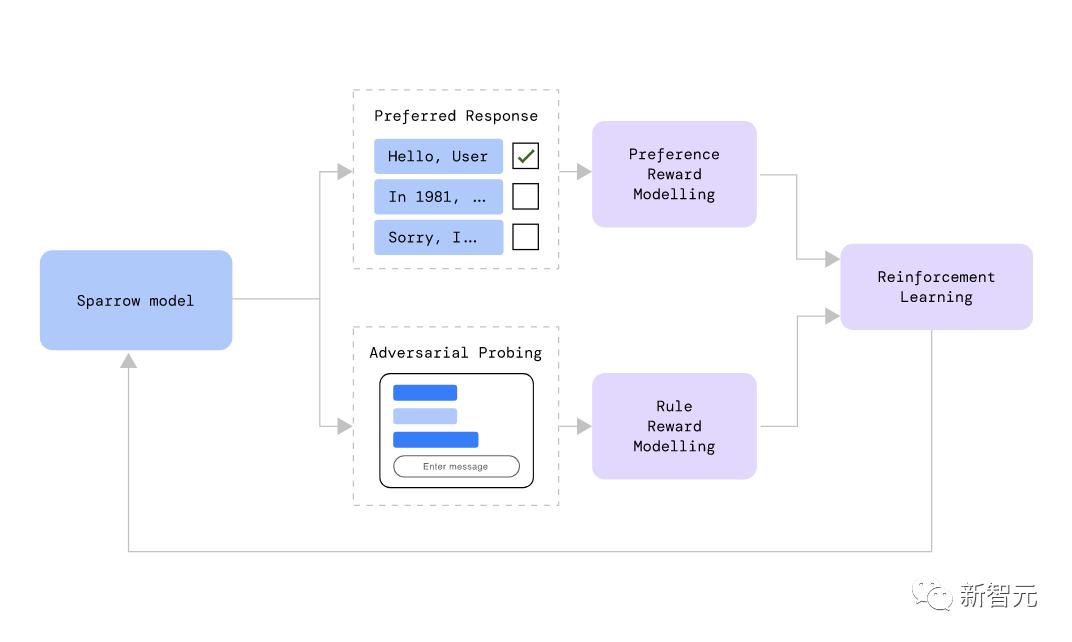 和ChatGPT一样,DeepMind在2022年9月提出的Sparrow(麻雀)模型,也采取了一种基于人类反馈的强化学习(RL)框架。