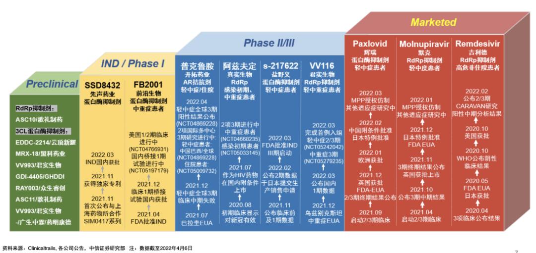 安信证券认为,根据药企相关新冠药物的临床开发进度,上半年迎来多个药物获批上市。总的来看,当前先声药业SIM0417、君实生物VV116、众生药业RAY1216成为了业内看好的下一个获批种子选手。