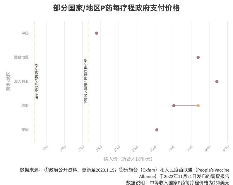 2022年11月21日,全球两大公益性组织乐施会(Oxfam)和人民疫苗联盟(People’s Vaccine Alliance)在一项调研发现,在辉瑞并未授权仿制药生产的中等收入国家,P药每个疗程的支出为250美元(折合人民币约1675.7元)。