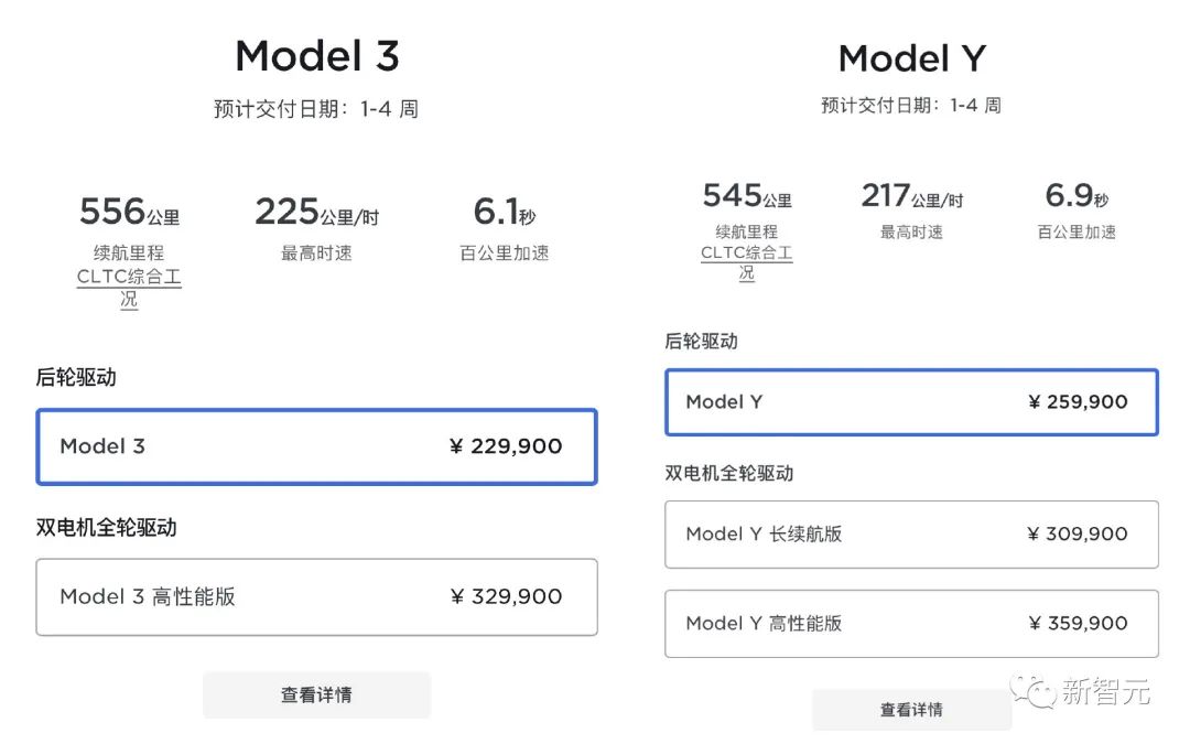 Model 3的起售价从26.59万元降至22.99万元,降价3.6万元;Model Y的起售价从28.89万元降至25.99万元,降价2.9万元。
