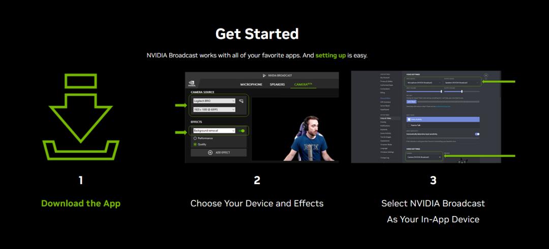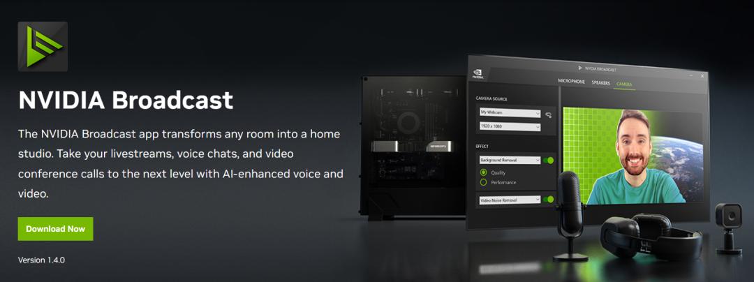 NVIDIA Broadcast是英伟达推出的一款直播app,提供噪音和回声消除、虚拟背景、人像跟踪、画面校准等功能。