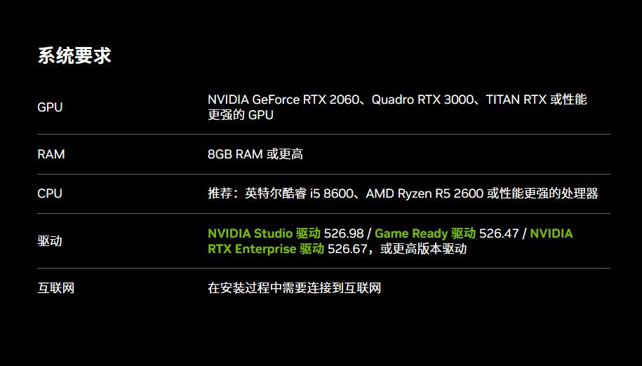 另外,在电脑配置方面GPU要求比RTX 2060性能更强的GPU,至少8G运行内存,Intel i5以上的处理器。