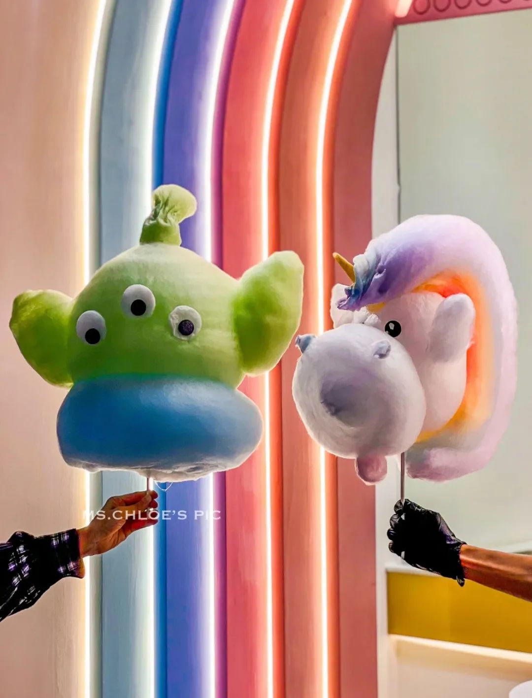 独角兽、外星三眼仔造型的棉花糖。