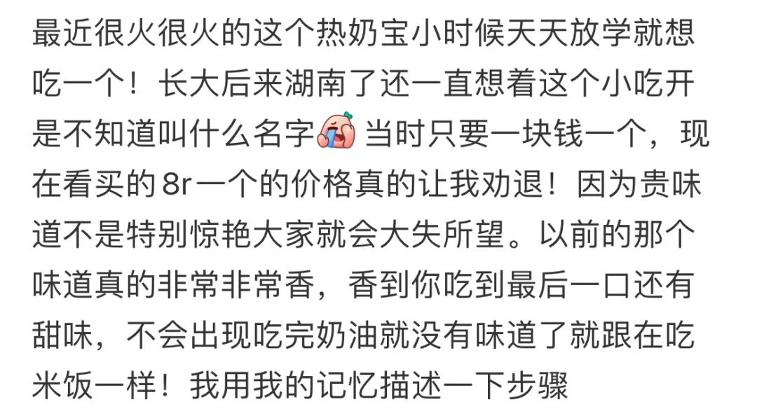 网友在某书po出的关于热奶宝的回忆。