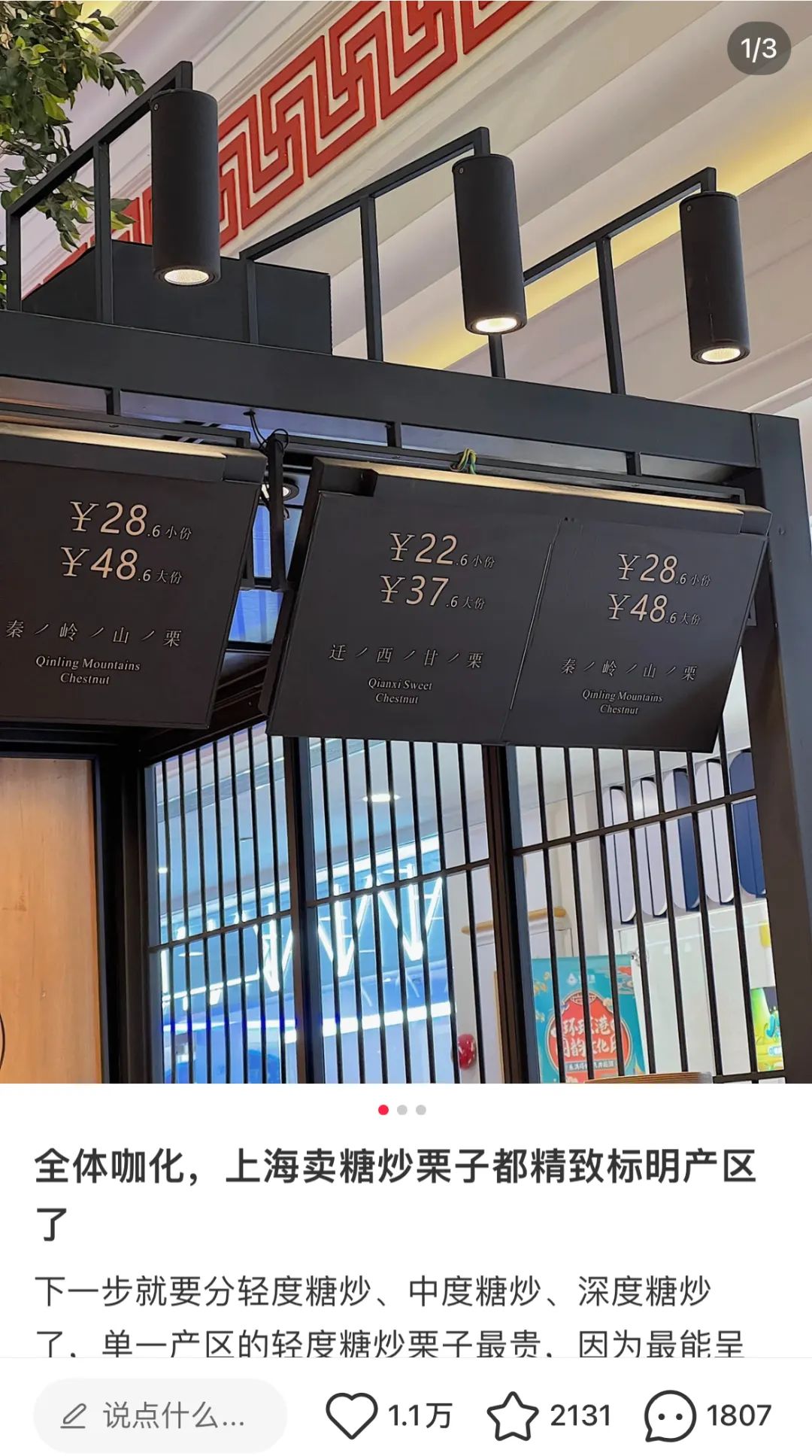此前一张上海零食店铺的价格表被顶上了某书首页,人们惊讶地发现,原本浓眉大眼的板栗也开始“咖啡化”了。