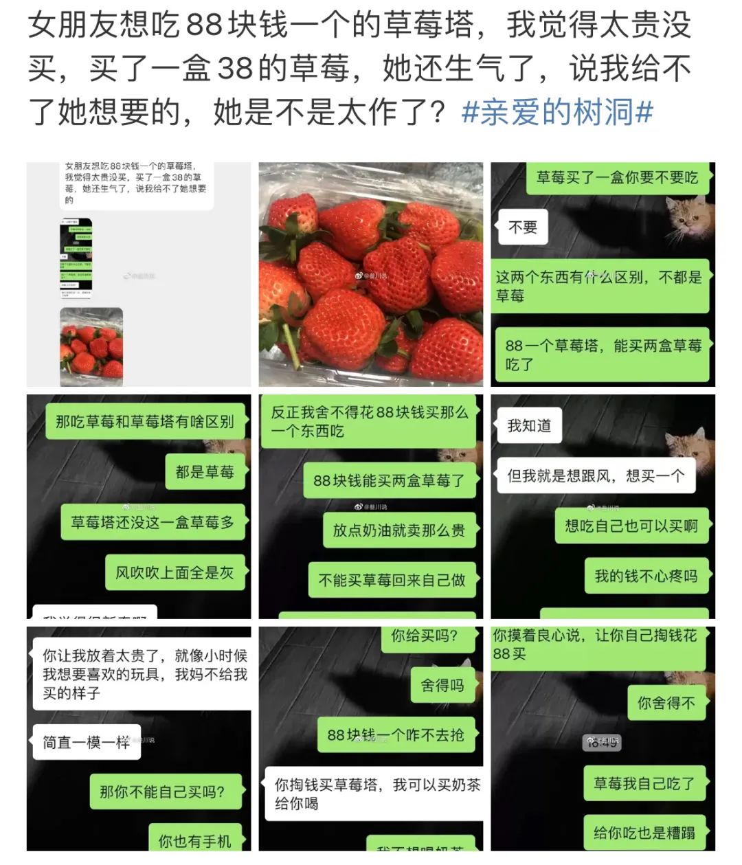 某网友关于女友该不该自己买草莓塔的投稿。