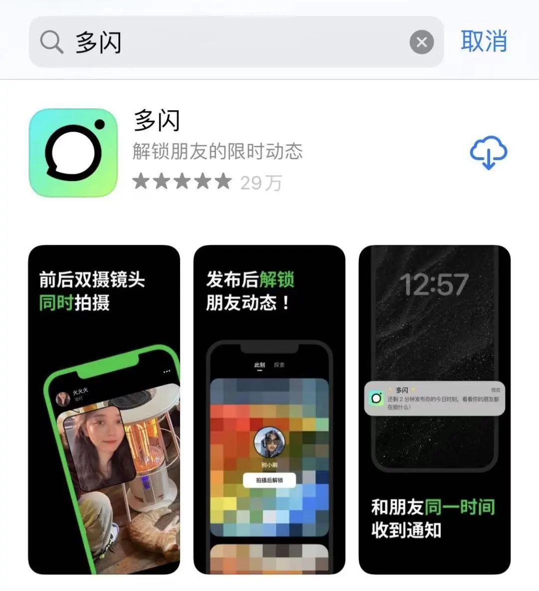 长期以来,抖音都想在腾讯坚固的社交市场上分一杯羹。从最早的“多闪”,到后来的“飞聊”,再到“派对岛”,字节曾推出过多款社交产品,但均没有掀起水花。比如2019年推出的多闪以抖音流量为基础,主攻短视频社交,然而即便有抖音的流量加持,最终多闪的结果只是并入抖音。直至2022年11月,多闪重新独立上线,主打照片和熟人社交,每天随机时间推送限时2分钟拍照挑战,只有参与拍摄,才能看到朋友的照片。