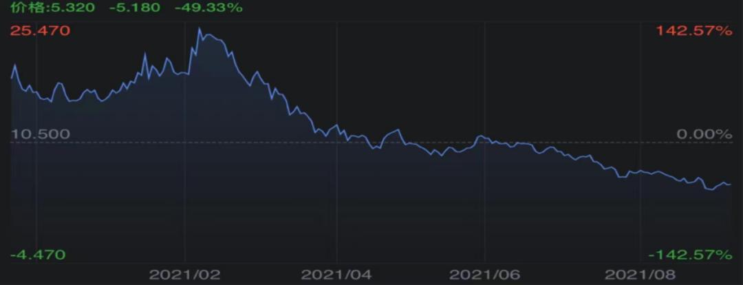 2021年以来,逸仙电商股票走势。图源/网络